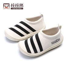 拉拉猪童鞋儿童学步鞋弹力布春秋男童女童宝宝布鞋婴儿幼儿软底鞋子一脚蹬单鞋1-3岁 米白 19码/内长13cm(适合脚长12cm)