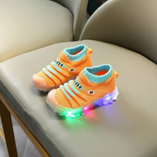 毛毛虫童鞋带灯男童鞋女宝宝亮灯鞋儿童一脚蹬网鞋防滑运动休闲鞋 桔色 25 码内长15.2cm