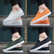 地支星夏季新款传统帆布鞋男老北京学生休闲鞋子男韩版潮流懒人套脚驾车板鞋青少年透气运动男鞋平底小白鞋 HBFH-1712黑色 41