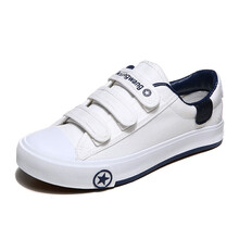 展缘儿童运动板鞋黑色10学生布鞋12女13男童鞋38码中大童白色球鞋15岁 A133白色/粘扣 39码/24.5cm