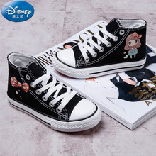 迪士尼旗舰官方店【特价捡漏】穿的儿童鞋子女童网红板鞋2021春夏季新款宝宝小童大童男童高帮帆 高帮黑蝴蝶结女孩 34