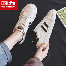 回力女鞋小白鞋女2021春季潮鞋学生百搭休闲鞋低帮平底板鞋子女休闲鞋 白黑-皮面款 36