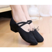 成人儿童舞蹈鞋女真皮软底教师鞋带跟芭蕾舞鞋猫爪民族瑜伽练功鞋 黑色帆布教师鞋 39