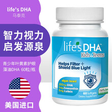 国际 life's DHA马泰克 天然植物 儿童dha海藻油维生素E 儿童营养 眼脑发育 胶囊 美国进口 青少年叶黄素护眼藻油DHA 60粒