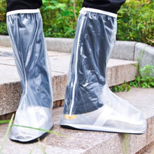 Freesmily时尚乳白透明防滑防沙成人男女电动摩托车加长高筒防雨鞋套儿童非一次性白色拉链套鞋 205白色高筒鞋套 XXL