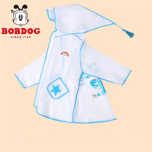 巴布豆儿童雨衣男童宝宝男孩女童幼儿园小童可爱雨披上学小学生雨鞋套装 蓝边(无书包位) L