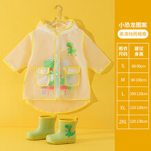 2021新款 隆鉴儿童雨衣女童幼儿宝宝卡通连体透明雨披男孩雨鞋套装轻薄防水全身 黄色【小恐龙雨衣】 L