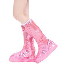 高筒防雨鞋套儿童男女成人亲子骑行防水防滑加厚耐磨雨天长筒靴防水鞋套雨靴 儿童粉色31-33码