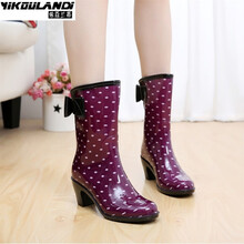 雨鞋高筒女士韩版时尚雨鞋高跟雨靴成人中筒水鞋滑套鞋水鞋胶鞋 圆点紫色/单鞋/标准 M适合37)
