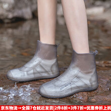 防雨鞋套防水防滑加厚鞋套可洗下雨天防水鞋套女儿童雨鞋套男脚套 中筒【加厚双层鞋底】茶色 L码【合适37-39鞋码】