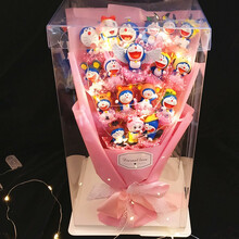 520情人节礼物送女友卡通动漫手办花束礼盒叮当猫机器猫哆啦A梦蓝胖子蜡笔小新史迪仔卡通公仔娃娃花束 18叮当粉色暖灯透明盒
