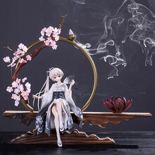 和风穹语穹妹动漫二次元手办倒流香炉 新中式禅意摆件创意个性家居客厅办公茶室玄关 套装白色(款式一) 送倒流香+大扇子