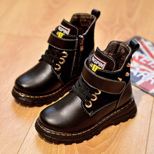 轩途诗儿童皮鞋男童马丁靴子耐磨防水男童鞋靴 儿童靴子 10083黑色加绒 35