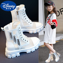 【】迪士尼旗舰官方店女童鞋2021年夏季新款儿童鞋子镂空网纱马丁靴透气女孩中大童短靴儿童马丁鞋 3 白色 35码/内长约22CM