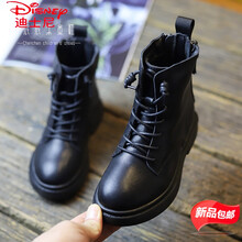【秋冬必备】迪士尼儿童马丁靴2021年儿童马丁靴真软皮女童短靴春秋单款2021年英伦风走秀黑色棉靴 黑色单里 26 内长15.8厘米