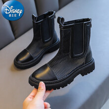 迪士尼(Disney)高品质女童马丁靴新款薄款网面镂空儿童短靴网纱透气凉靴小孩穿的 黑色【薄网】 31码/内长约19.6CM