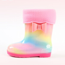 迪士尼儿童雨鞋女童公主可爱宝宝女小靴防滑学生水鞋幼儿园小孩水靴 渐变彩虹(配棉套) 底长190(鞋内长19cm)