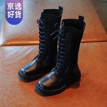 ℘‼️〶轻奢名牌潮酷童鞋秋冬天小孩子穿的女童纯色高筒靴2020秋冬新款英伦风皮靴儿童透气拼接系带马丁 黑色 26