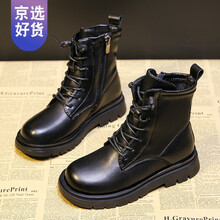 ℘‼️〶暖冬新 品牌童鞋3-14岁小孩冬天穿的女童马丁靴2020年秋冬新款童鞋英伦风冬季二棉短靴儿童 黑色单靴 27码内长17cm适合脚长16.5