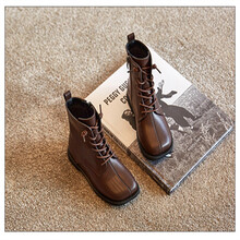 孩恋依依女童皮马丁靴2021春秋季新款小女孩公主短靴韩版儿童时尚单靴潮 棕色 30码