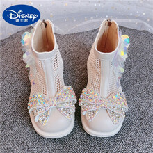 迪士尼(Disney)儿童网鞋2021夏季透气薄款短靴韩版镂空马丁靴女童水钻公主凉鞋小孩穿的 米白色 码数偏小建议买大一码
