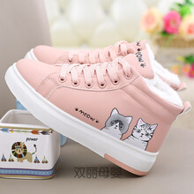 小女孩鞋子冬款女童鞋冬款加绒加厚高帮儿童棉鞋小女孩学生中大童防水冬天运动鞋 粉色偏小一码D 32