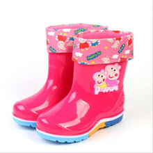 小猪佩奇雨靴 儿童胶底雨鞋雨靴水靴小中童男女童小孩防水雪地靴潮 红色佩奇1 脚长加1.5厘米选码 脚胖拍大一码