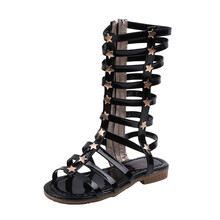 女童凉靴2020夏季新款儿童铆钉凉靴女童高帮长高筒星星露趾罗马鞋学生凉鞋 黑色 26