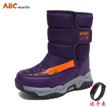 ABC matfe女童雪地靴2021新款冬季儿童长筒加绒加厚棉鞋中童防滑防水棉靴子 紫色 26