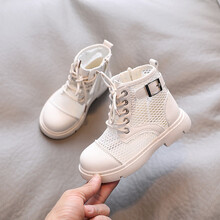 迪士尼商场同款女童皮鞋2021年春季新款时尚拉链款小女孩靴子透气镂空儿童公主鞋 白色 34码内长20.5cm