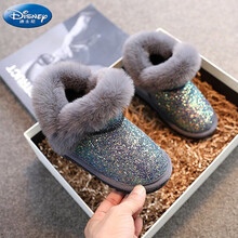 迪士尼儿童雪地靴女2021年新款宝宝大棉鞋女童靴子亮片保暖防滑加厚东北 灰色 22