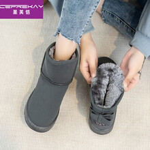 圣芙恺 女童雪地靴磨砂皮儿童加绒加厚保暖防水棉鞋2020冬季棉靴男童防滑短靴冬季靴3-6-12岁靴子 灰色 25码内长16CM