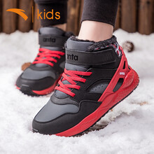 安踏童鞋男童棉鞋冬季加绒棉靴儿童运动鞋加厚保暖中大童男鞋子 黑/城堡灰/大红 35