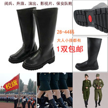 【阅兵高筒靴】男女高筒皮靴男鞋动漫升旗骑马术靴长靴马丁靴子 黑色精品款,中桶 演出长期款 27 儿童