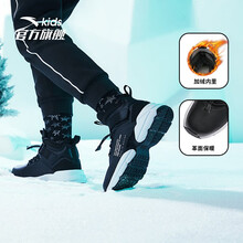 安踏童鞋男女童棉鞋2020新款冬季加绒棉靴儿童运动鞋加厚保暖中大童男鞋子 黑/安踏白-4 36