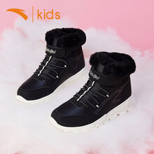 安踏儿童棉鞋二棉鞋冬季加绒棉鞋2020新款女童高帮保暖冬鞋雪地靴 6810-3黑 33