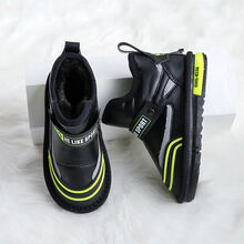儿童雪地靴2020年秋冬季新款防水防滑男童棉靴女童加厚加绒棉鞋子 黑色 26