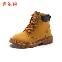 意尔康童鞋男童马丁靴2020年秋冬加绒潮英伦风中大童儿童短靴子 ECZ0748238 黄色二棉 26