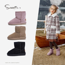 斯纳菲女童靴子冬季儿童雪地靴加厚女童冬鞋短筒棉鞋209614甜美可爱系粉37