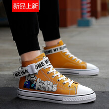 帆布鞋男青少年学生校园风情侣高帮板鞋子韩版潮流学院风学生休闲漫画涂鸦男鞋亲子大童 H808黄色 38