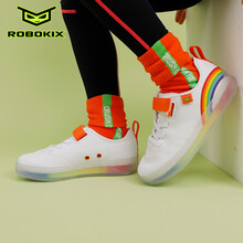 《师父!我要跳舞了》同款ROBOKIX新品亲子款彩虹小白鞋防滑耐磨板鞋透气帆布鞋面 亮白/活力橙 29码