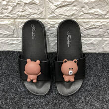 女生拖鞋 亲子夏款卡通3d布朗熊女高跟凉拖鞋儿童平底一家三口防滑男拖鞋 典雅黑平底 37码适合36脚内长220mm