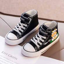 回力童鞋新款男童休闲单鞋学生鞋亲子鞋儿童高帮布鞋女童卡通布鞋 黑色 30码/200内长约19.5CM