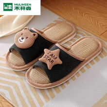 木林森日式拖鞋亲子亚麻拖鞋春秋季居家用情侣室内地板棉麻小孩男童女童儿童拖鞋 深灰色(星星熊) 35-36码(适合35-36脚穿)
