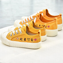 卜丁亲子鞋母女鞋子2021春款韩版帆布鞋饼干童鞋休闲平底单鞋时尚夏季薄款布鞋 黄色 24码内长16.5/适合脚长16cm