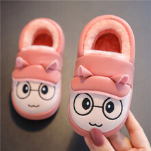 小孩子小朋友穿的儿童棉拖鞋男童女童PU皮面防水包跟室内宝宝亲子棉鞋秋冬毛绒居家新品 粉色 内长14cm(鞋标15 适合20-21码)