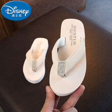 迪士尼新品儿童拖鞋夏季女童公主可爱室内凉拖防滑软底亲子沙滩鞋海边人字拖 7496中跟绒面米色 36 标准码