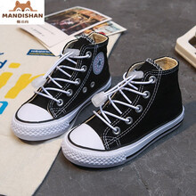儿童帆布鞋2021春秋款高帮韩版休闲男童时尚亲子鞋宝宝小白鞋小男孩穿的 8008黑色 21