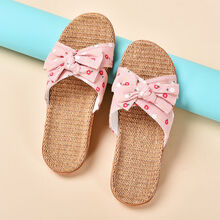 儿童亚麻拖鞋蝴蝶结女亲子凉女童小孩中大童防滑室内家居夏季 粉红色 内长21.5cm 33-34