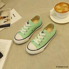 帆布鞋儿童低帮亲子鞋儿童帆布鞋春秋款男童女童韩版宝宝白小童休闲板鞋 5057浅绿 26码内长约16.5cm